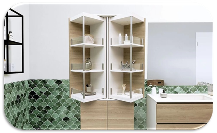 Le modèle XL, intégré dans une colonne, et le modèle S, présenté dans un îlot double, tous deux avec solution d’illumination, ont suscité un fort intérêt. Le FurnSpin Push to Open Silent était également mis en scène dans un meuble suspendu de salon avec portes en verre, sublimé par la nouvelle charnière Avosys avec solution à coller. Cette combinaison assure une fixation discrète et fiable, transformant l’ensemble en un bar élégant et particulièrement remarqué. Une application en meuble de salle de bains a ouvert de nombreuses pistes créatives pour les visiteurs. Des solutions dédiées à l’agencement de magasins ont également nourri l’inspiration des clients. Enfin, RoomSpin a captivé les agenceurs avec des applications pour salles d’attente, salles de réunion et espaces tertiaires.